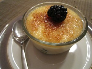 I invited some friends over for a Moroccan tagine dinner tonight and was warned that one of them couldn’t eat gluten. There were a few desserts I wanted to make that stayed with the Moroccan theme, but was challenged to find one that I liked without that pesky gluten. In the end I settled on something completely different – a creme brulee variation. I’ve been eyeing up some ramekins (smallish oven-proof cups) to add to my kitchen collection and thought that a brulee would be a good excuse for the purchase and a nice way to break them in. It would also allow me to use the closest thing to a power tool in the kitchen: a brulee torch. Yes, I have home insurance.