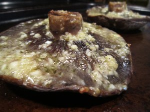 5. Place baking sheet on top rack of the oven for 6-8 minutes. Check the mushrooms regularly after 6 minutes to make sure the mixture doesn’t burn. Remove from baking sheet with spatula or BBQ tongs and serve warm, either whole or sliced.