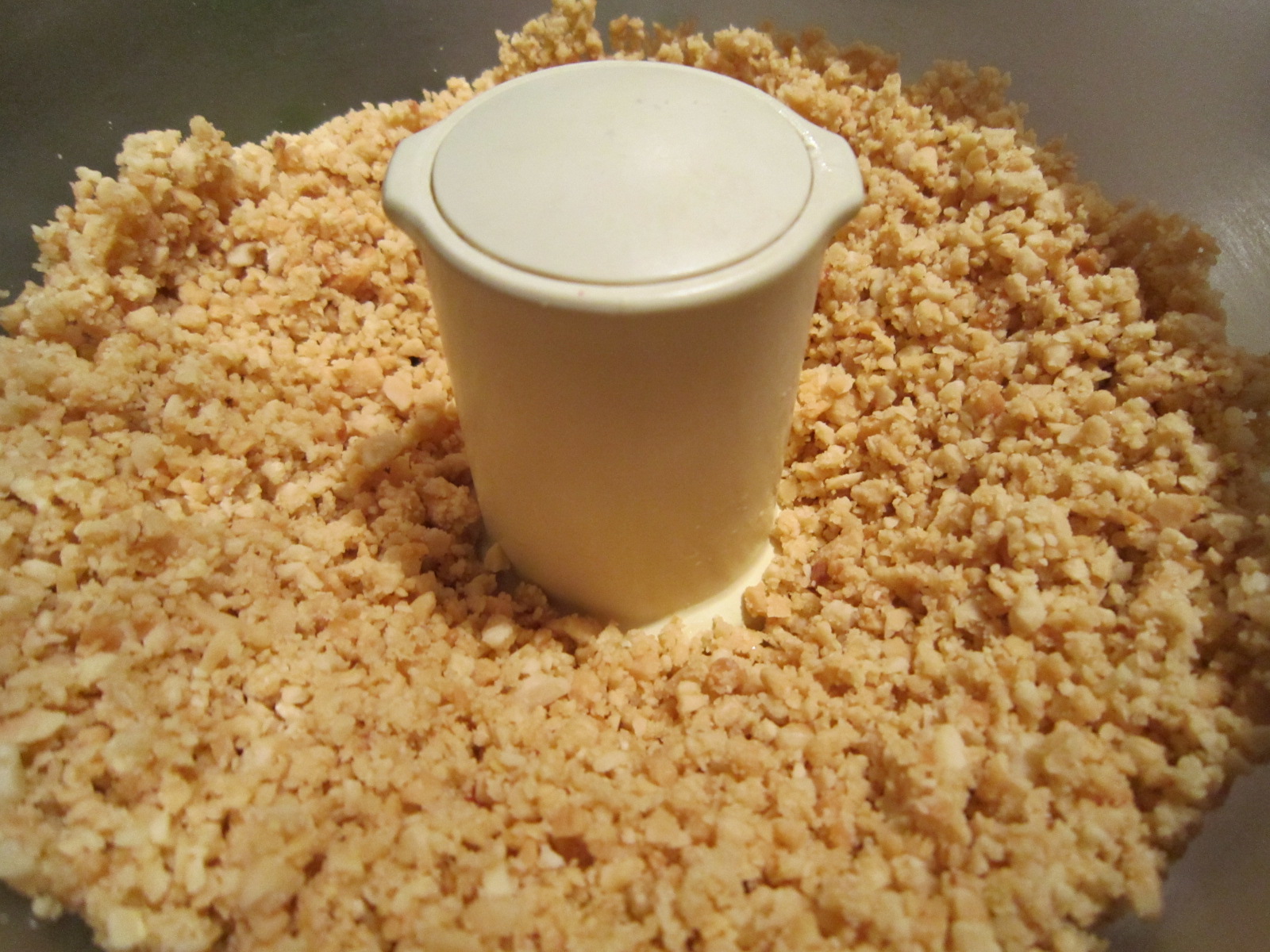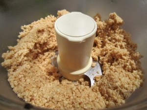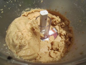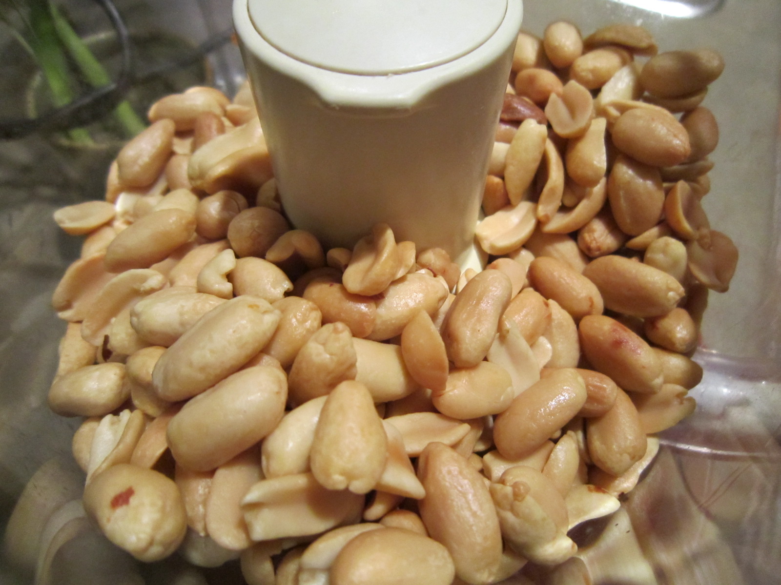 Not from fiscal necessity, but rather out of curiosity, I wanted to see how easy it would be to make my own peanut butter at home. I’m not a huge fan of the crunchy, thick stuff they sell in health food stores, so I decided to dispense with the “all natural” and add a bit of sugar and oil for increased taste and added creaminess. The ingredient list is sparse: roasted peanuts, salt, oil and sugar, though if you prefer natural peanut butter perhaps leave out or reduce the last two ingredients.