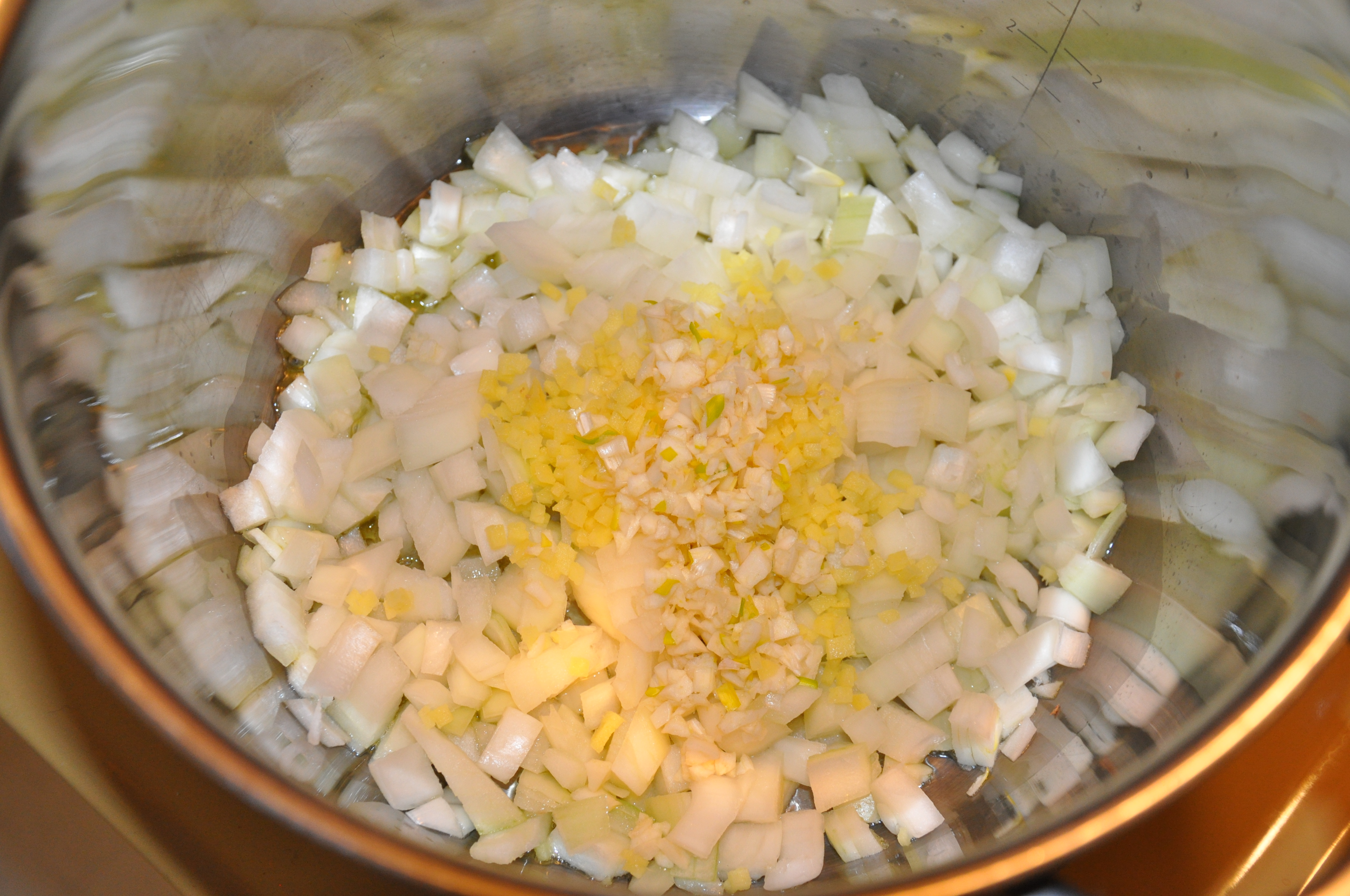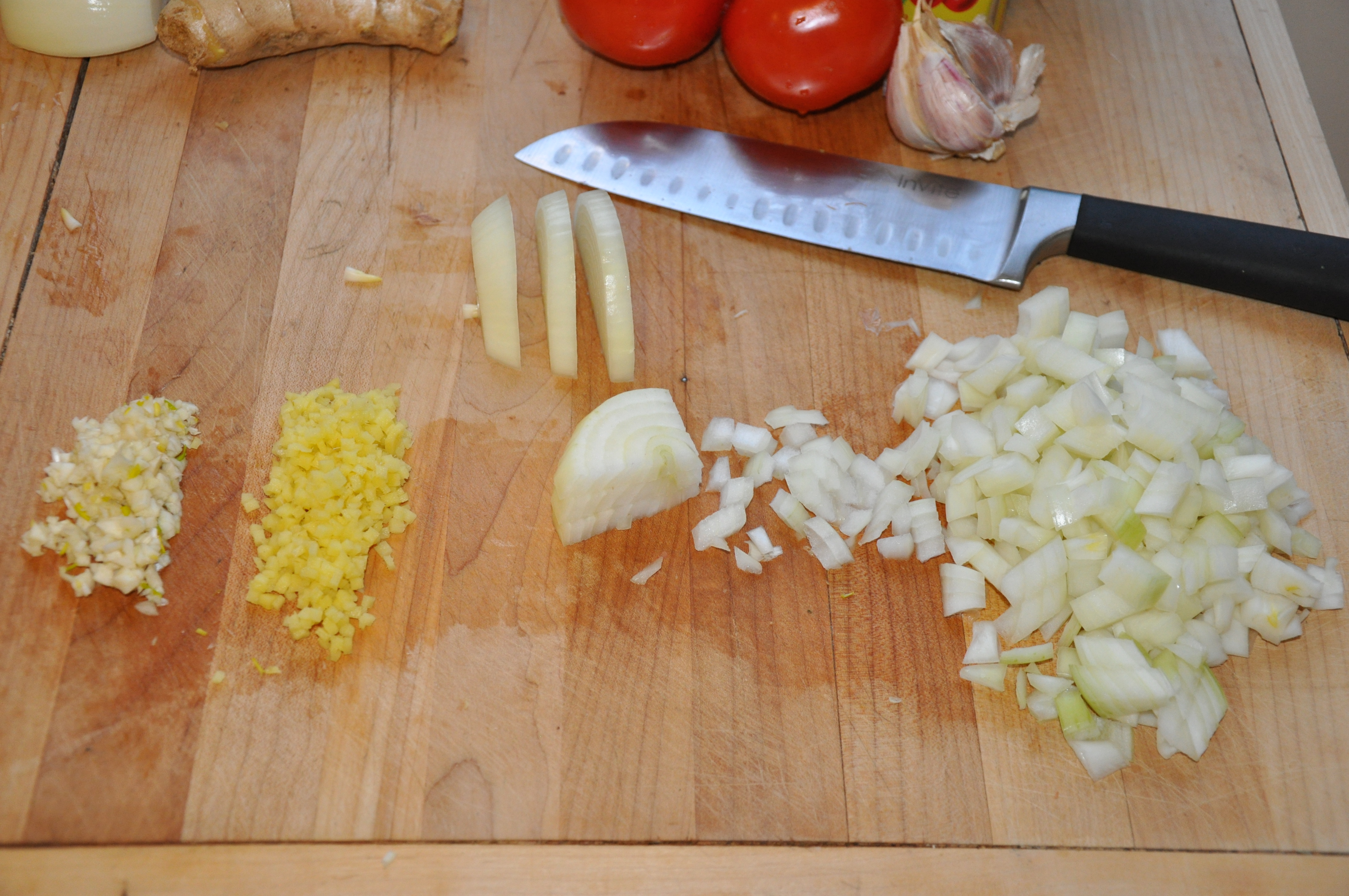 - Dice 2 medium onions, finely chop ginger and garlic.