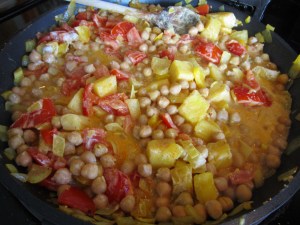 Your curry chickpea dish looks good. I’d substitute the pineapple for something else since it gives me hives, but otherwise, I think that I’d like it. Hegui makes some similar Indian-style dishes with chickpeas.