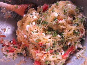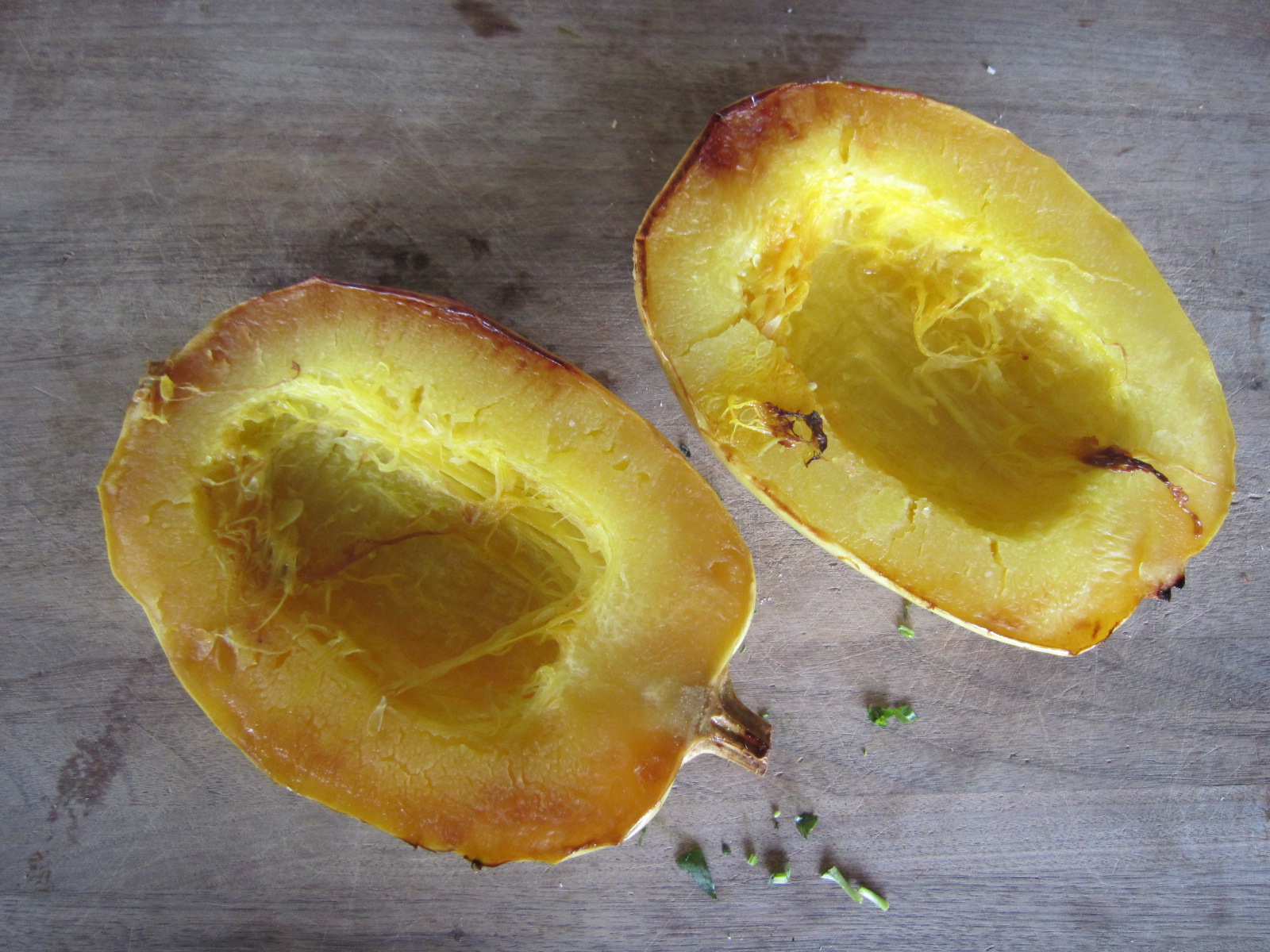 It’s easy to see how my unsuspecting brother and I could have been so easily duped. Spaghetti Squash is true to its name in that it really does pass for pasta. Italian children, likely possessing a more evolved appreciation for pasta, would probably smell the ruse a mile away and push their plates away with a haughty air – “Ma-ma, what eez zis sporcizia?!” (unfortunately, all my ethnic impersonations end up sounding Parisian).