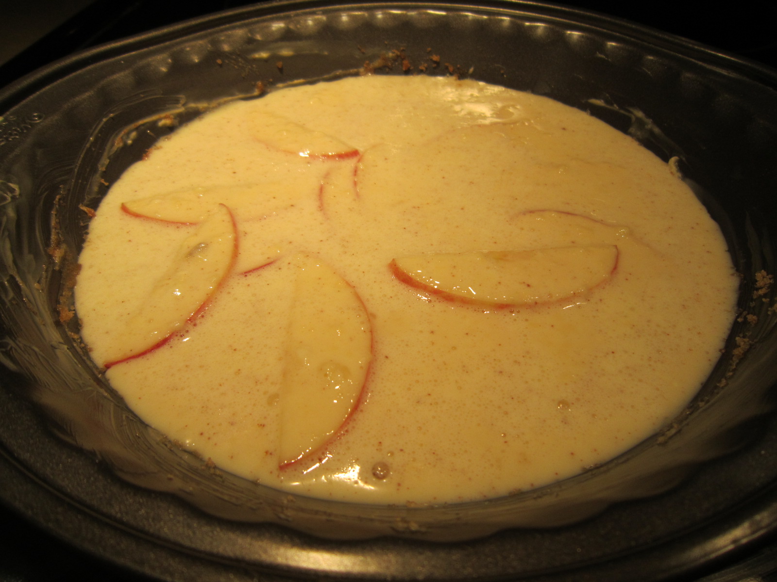 4. Pour the batter into the pie plate.