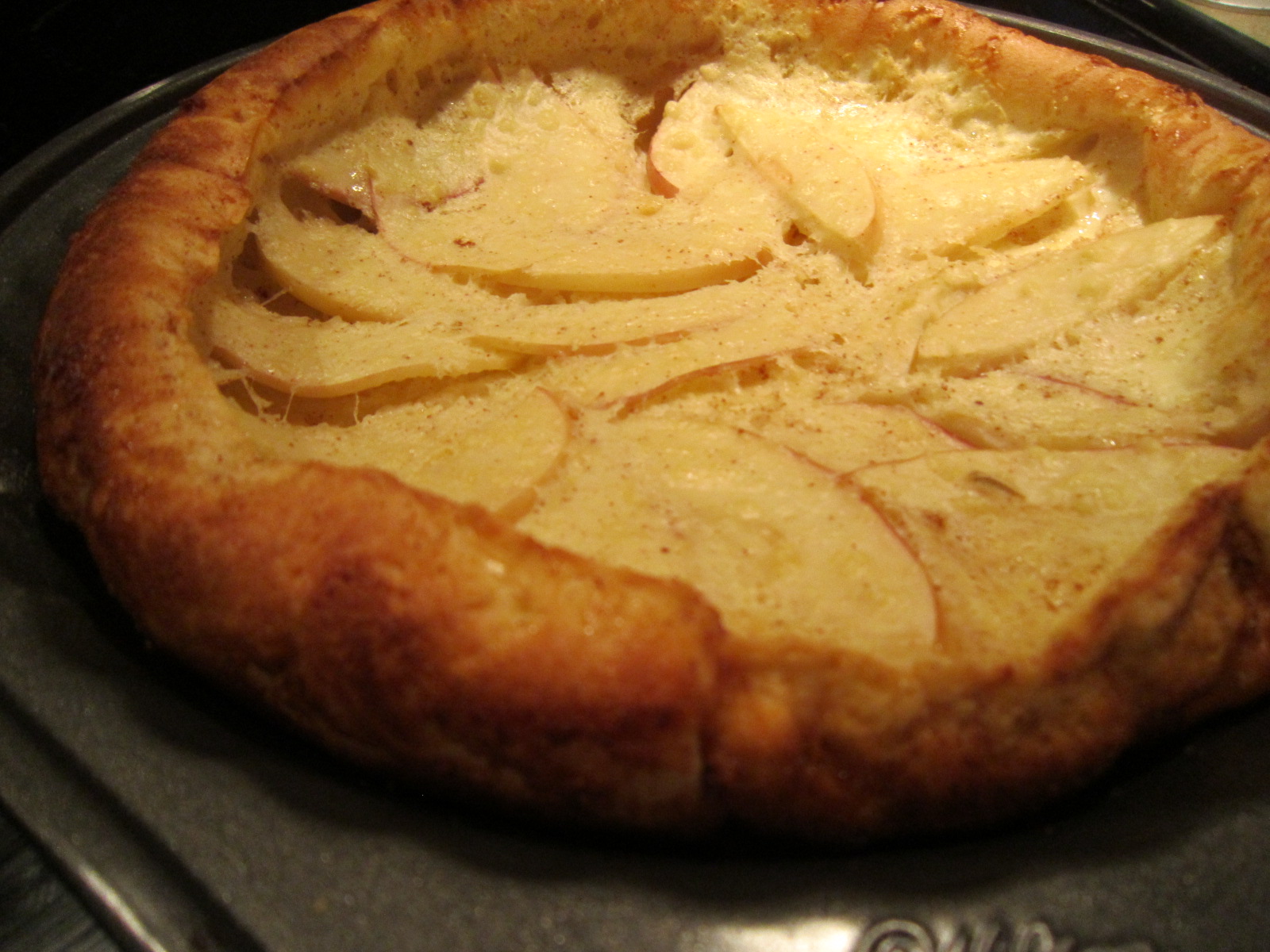 I also stumbled upon a variation of traditional stove-top apple flapjacks which I had to try. Apparently German in its roots, this “oven pancake” gives the pancake a puffy, shell-like appearance that is both filling and slightly reminiscent of a distant Canadian cousin, the Beaver Tail – my favourite Quebec export after Maple Syrup, Poutine and Blanche de Chambly beer. Enjoy!