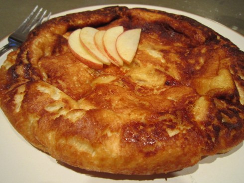 I also stumbled upon a variation of traditional stove-top apple flapjacks which I had to try. Apparently German in its roots, this “oven pancake” gives the pancake a puffy, shell-like appearance that is both filling and slightly reminiscent of a distant Canadian cousin, the Beaver Tail – my favourite Quebec export after Maple Syrup, Poutine and Blanche de Chambly beer. Enjoy!