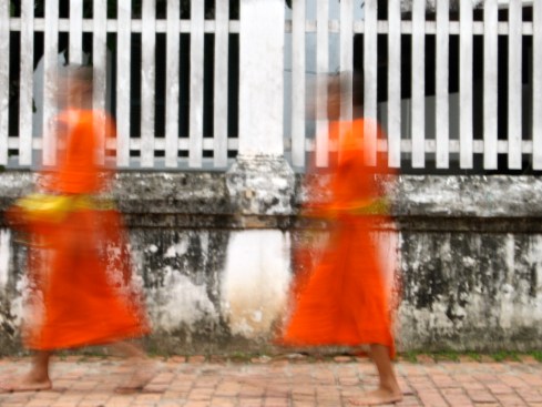 We decided to get out of the village today, at least for a while. We borrowed two bikes and pedaled clumsily down the highway to a nearby town. It was probably twice the size of our home-stay village and presented a striking demonstration of life’s relativity. The shops lining the main street dazzled and impressed us, even if they only sold bike tires or shampoo. It was like seeing the neon glare of a Las Vegas strip after weeks in the desert. We cycled along the Mekong river (which winds its way snakily down from China, an Asian Mississippi) and saw on the other side, a mere swimming distance, the jungled mountains of Laos.